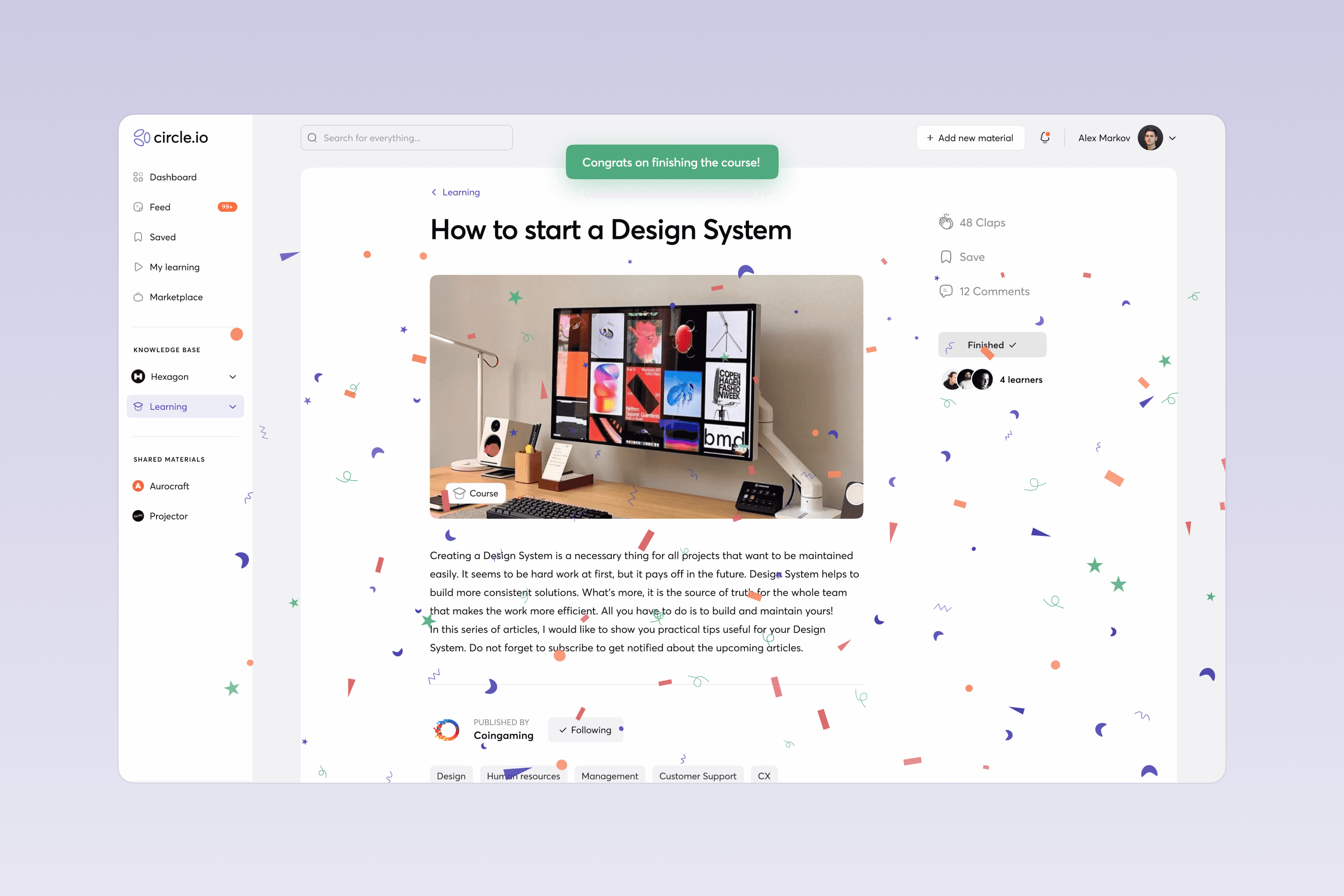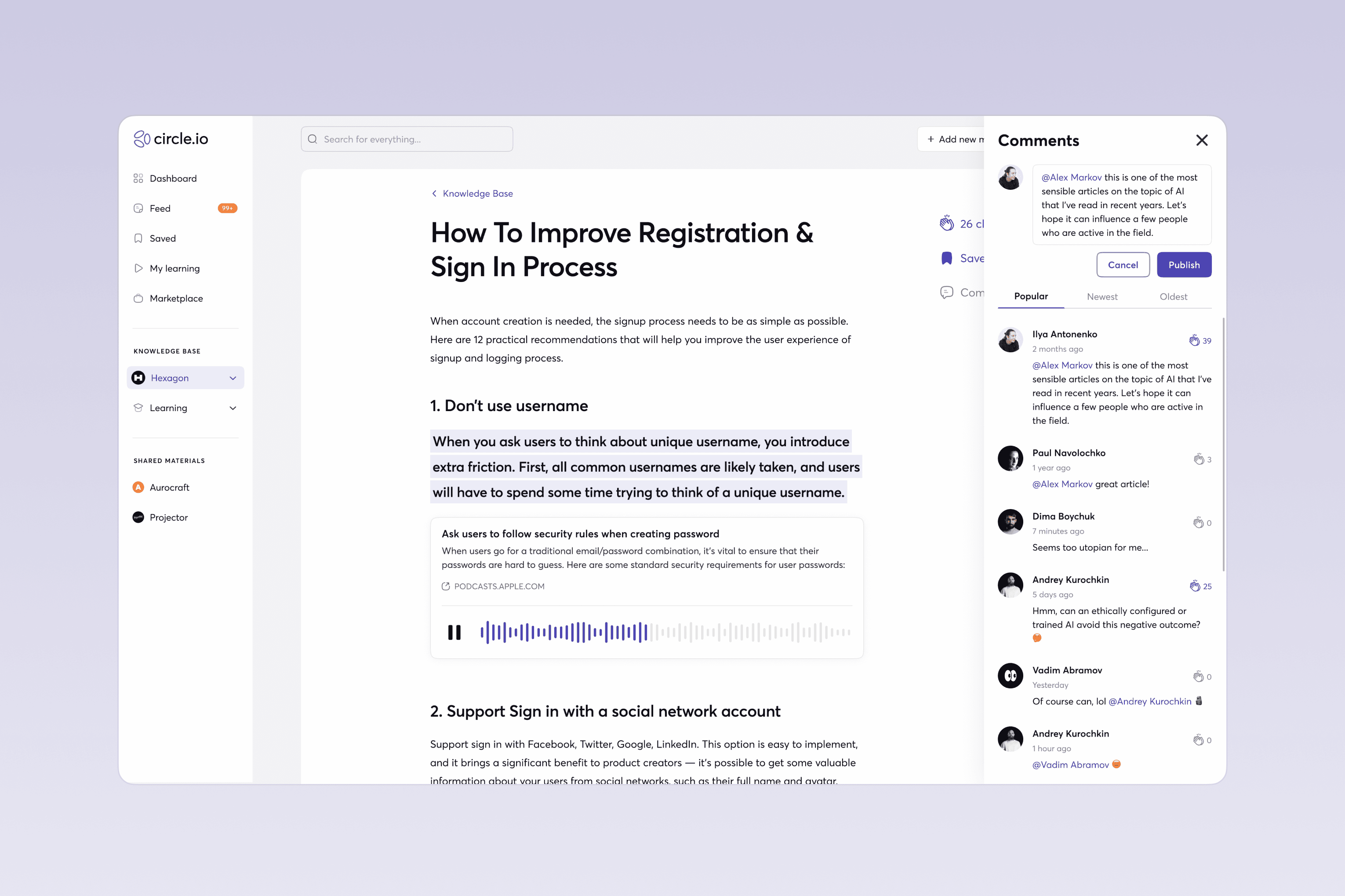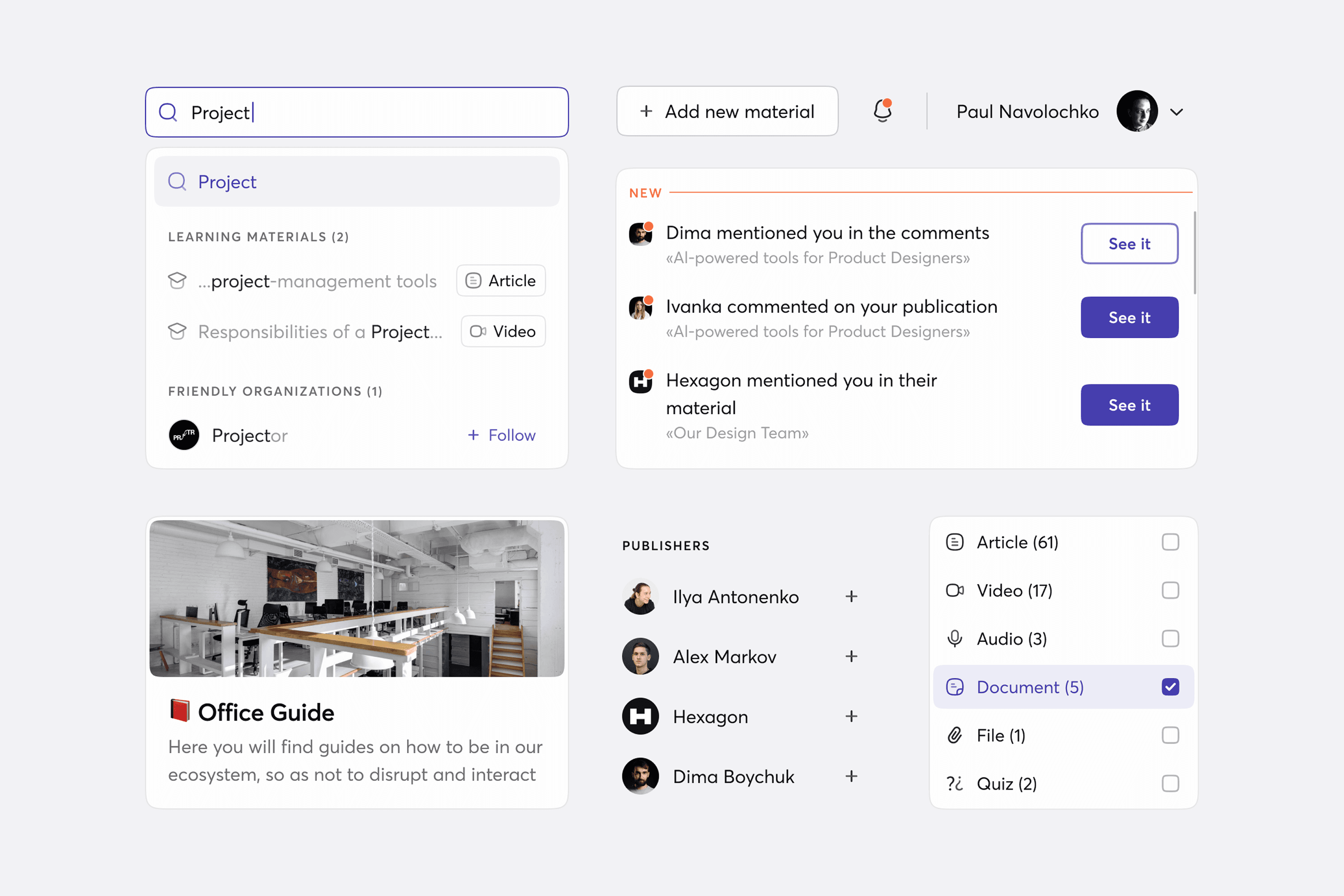 An AI-based knowledge base and training tool for companies and their coworkers made to amplify the corporate culture of knowledge sharing and professional learning. It’s like the multi-functional social network made up of tools for databases and documentation management, media, and learning experience, which allows creating and storing a variety of content, including courses for internal use.