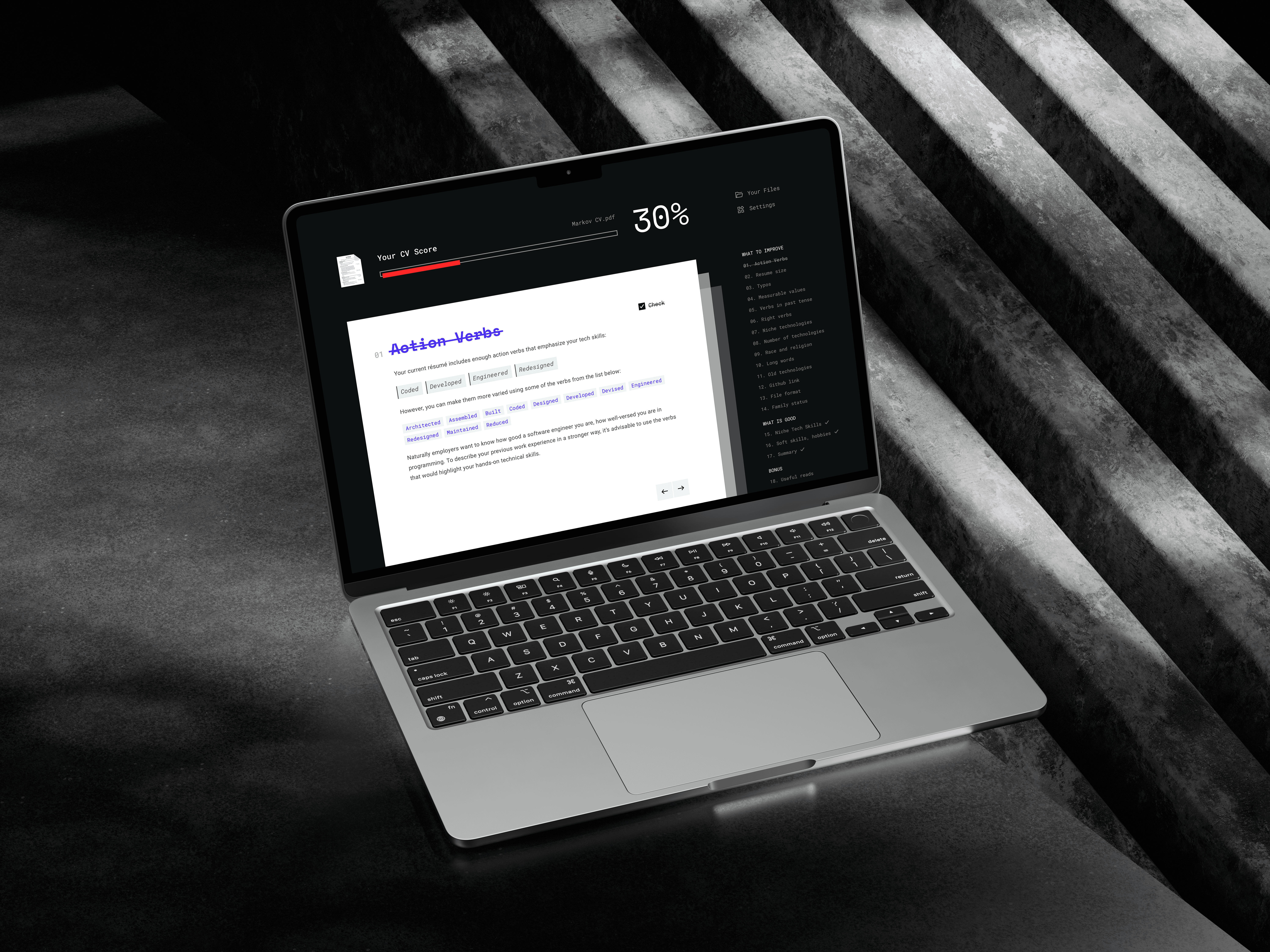 The rating system allows users to quickly assess the overall state of their résumé and adds extra value to the review process: it not only suggests improvements but also reflects the document’s overall quality. After making the recommended changes, users can re-upload their file to see how much their résumé has improved.